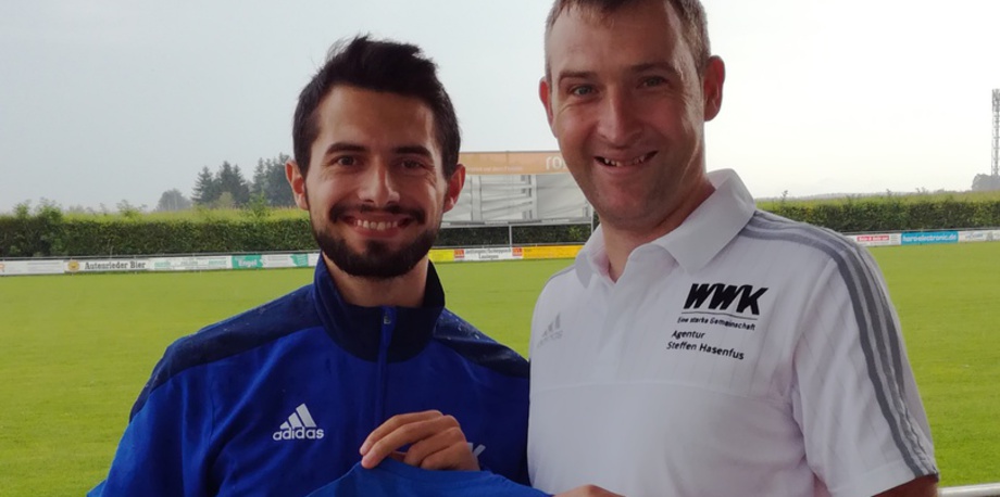 Der FC Günzburg gratuliert seinem Spieler Jeton. Trainer Holger Nittka überreichte dem stolzen Vater das "erste" FCG-Trikot für seinen Sohn Leon.