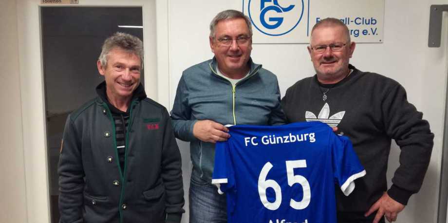 Der FC Günzburg wünscht seinem Vorstandsvorsitzenden Alfred Liebrecht alles Gute zu seinem 65. Geburtstag. Seine Stellvertreter Slawomir Sigmund und Hans West überreichte Alfred zu diesem Anlass das passenden Trikot!